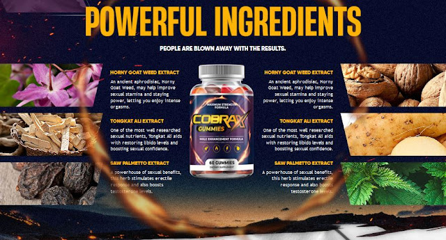 Horny Goat Weed Extract, Tongkat Ali Extract, Saw Palmetto Extract, Wild Yam Extract, Nettle Root Extract are the major ingredients found in this supplement. When it comes to the Cobrax gummies, one of its key strengths lies in its powerful blend of ingredients.